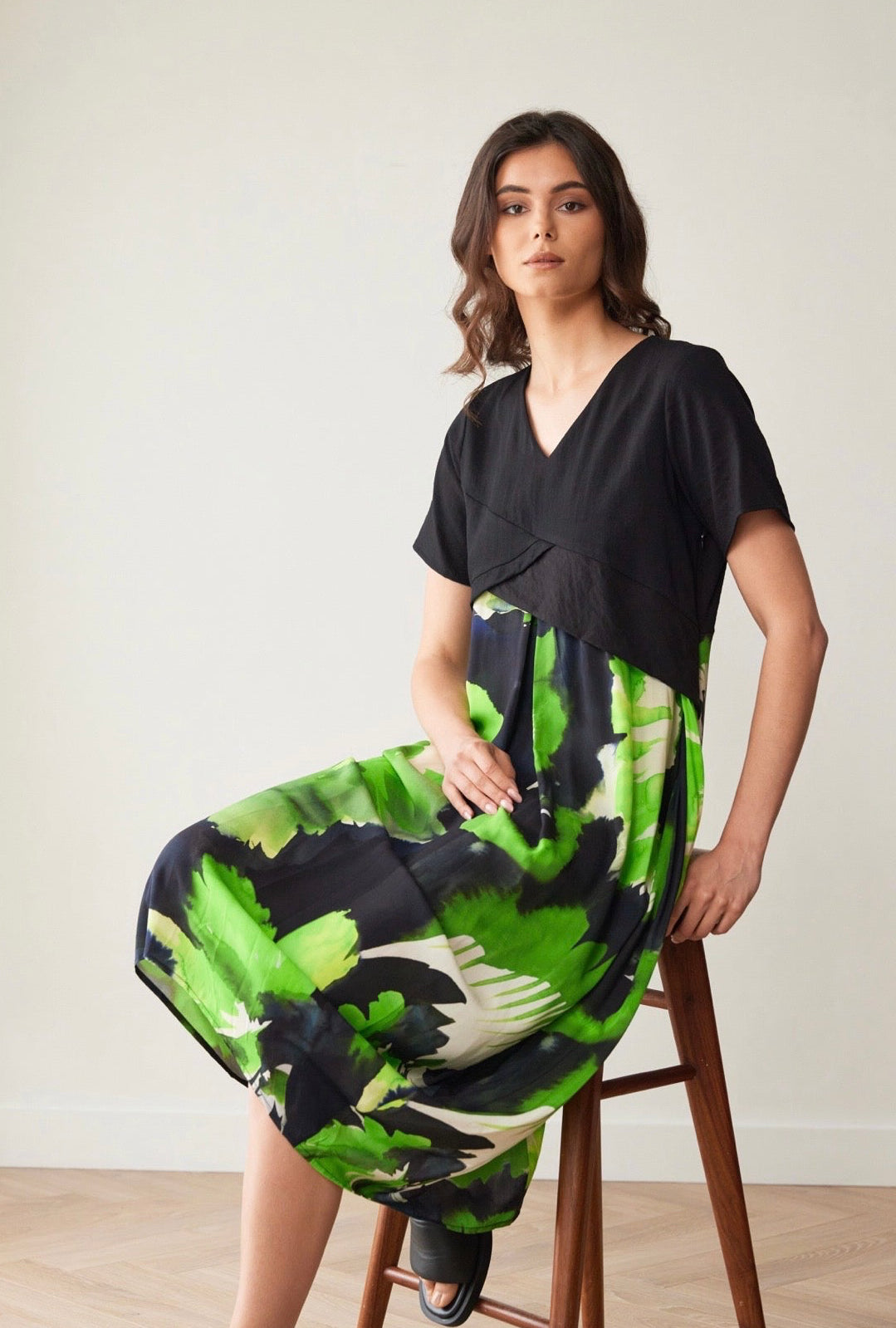 Peruzzi Green Leaf Print Dress