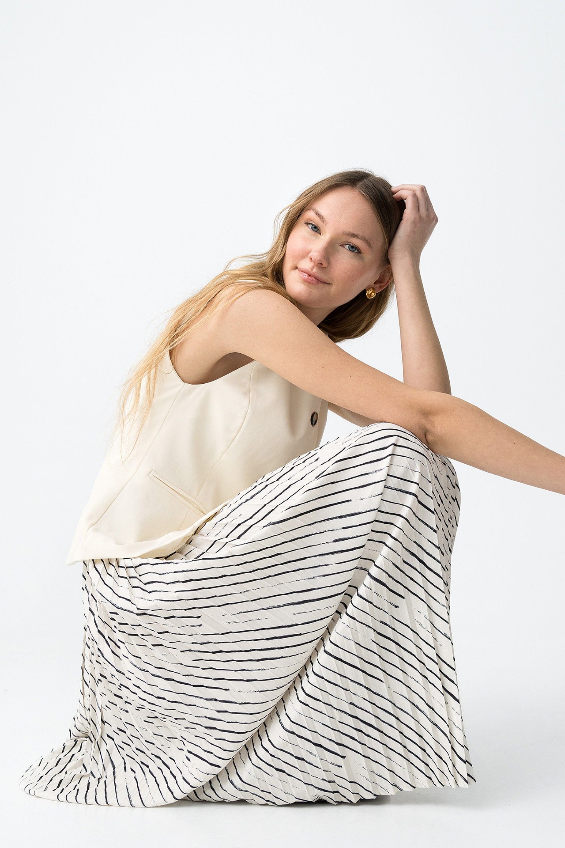 Tiffosi Cream & Black Stripe Knit Top