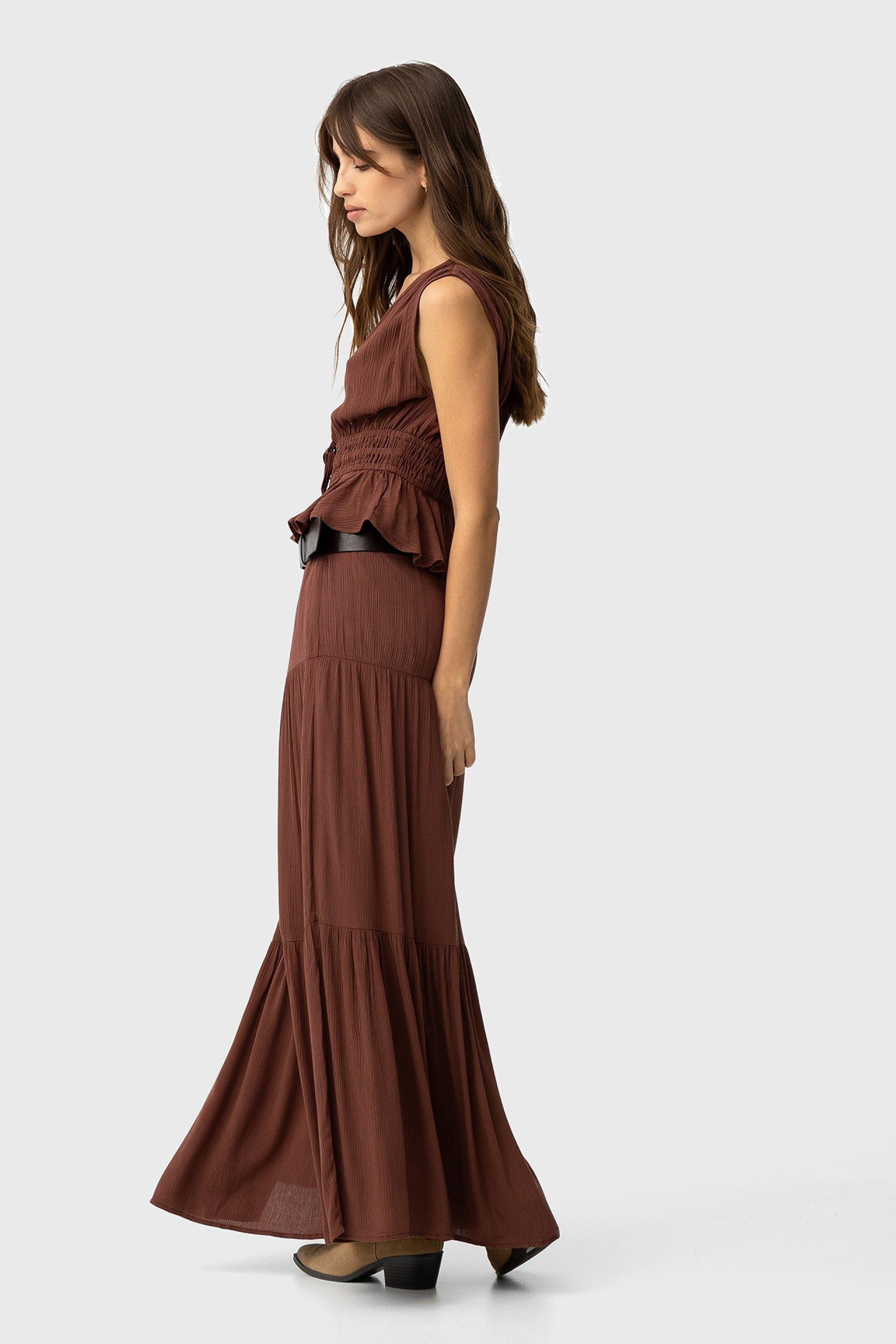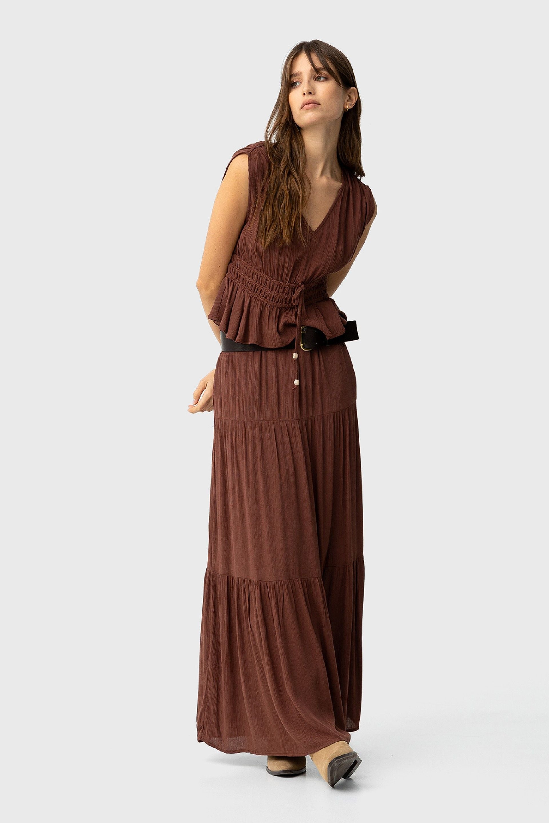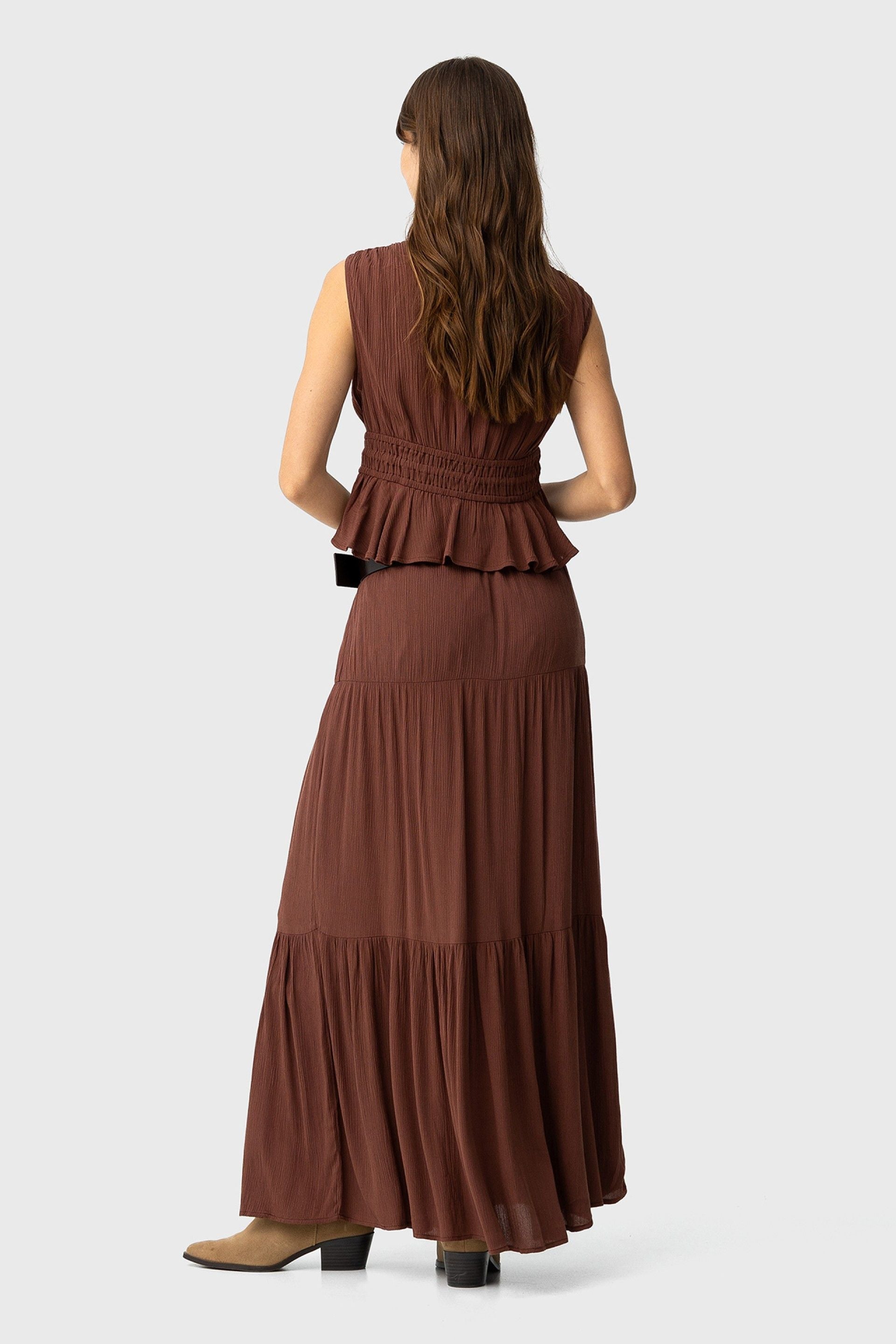 Tiffosi Brown Tiered Maxi Skirt